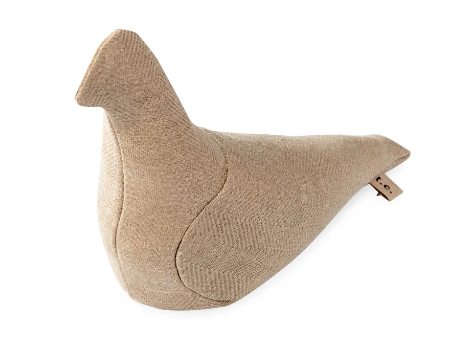 Aus einem Kunstprojekt der belgischen Designerin Christien Meindertsma für das Texture Museum in Kortrijk entstanden. Die sowohl in ihrer Hülle wie in der Füllung aus Flachs gefertigten Taubenfiguren erinnern an Spionagetauben, die im 1. Weltkrieg im Museumsgebäude gehalten wurden. Schönes Objekt mit guter Funktion!
