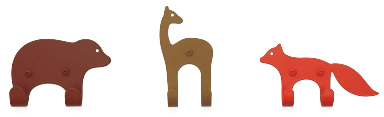 Mit dem Garderobenhaken-Set Savanna macht Aufräumen endlich Spaß. Ob Jacke, Rucksack oder Kuscheltier: Spielend ordnen die Kleinen ihre Lieblingsstücke den Motiven Flamingo, Flusspferd oder Giraffe zu. Schöner Nebeneffekt: endlich Ordnung auf der Safari-Tour.