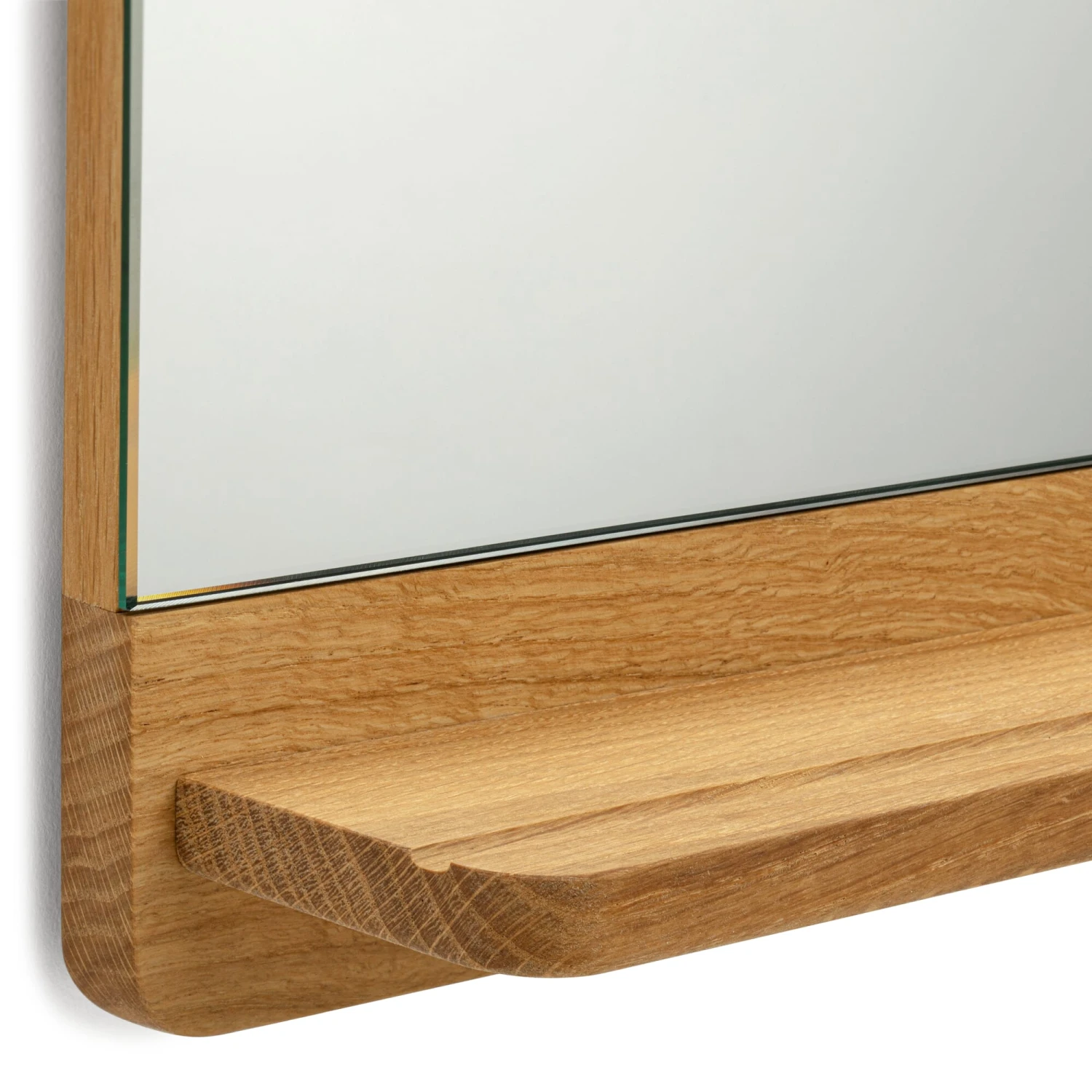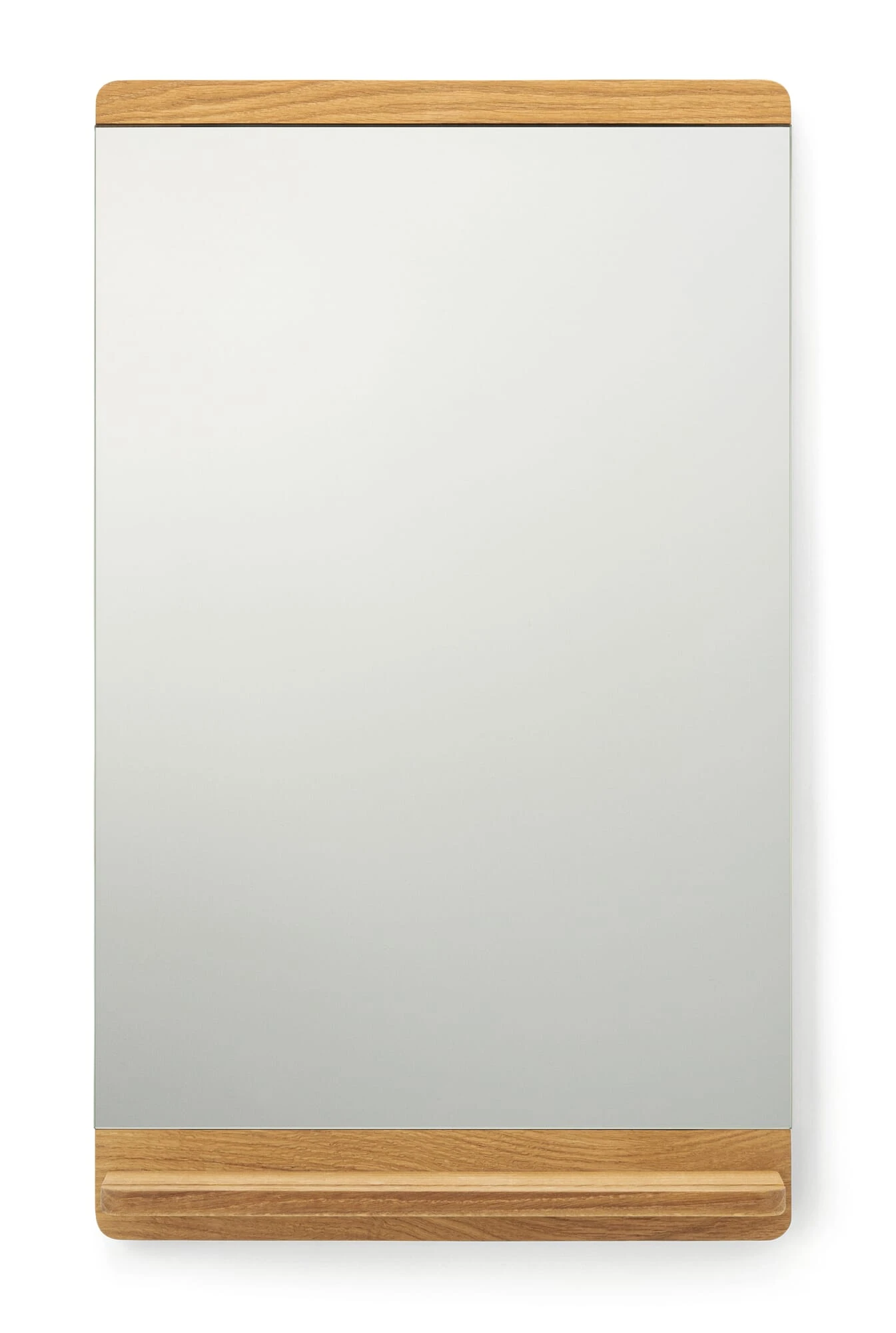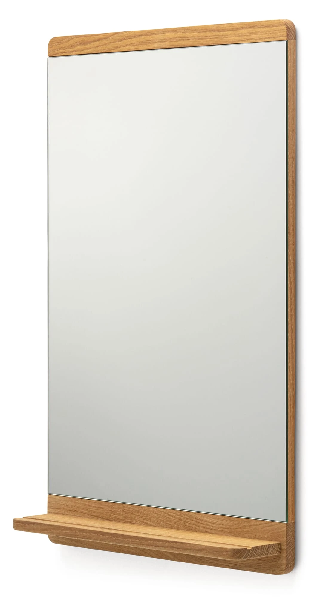 Funktional, klar, handwerklich ausgereift – die Wesensmerkmale der Shaker-Möbel, deren Tradition sich Form & Refine in seinen Entwürfen annähert, sind auch in diesem Wandspiegel vorbildlich umgesetzt. In klassischer Schreinermanier wird das Eichenholz sorgfältig verdübelt, verleimt und abschließend geölt. Dank seiner unaufdringlich geradlinigen Gestaltung fügt sich der Wandspiegel leicht in jedes Interieur ein und tritt dennoch in Flur und Bad hilfreich hervor: mit einem klaren Spiegelbild ebenso wie mit einer Ablage, welche die Utensilien des Alltags griffbereit in Erinnerung hält.