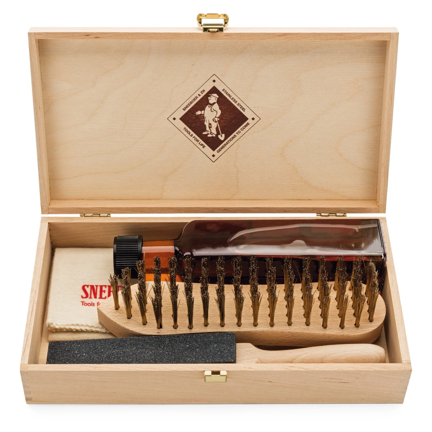 Lieferung in einer Erlenholzkiste (L 28 x B 15 x H 6 cm). Gesamtgewicht 1,2 kg.