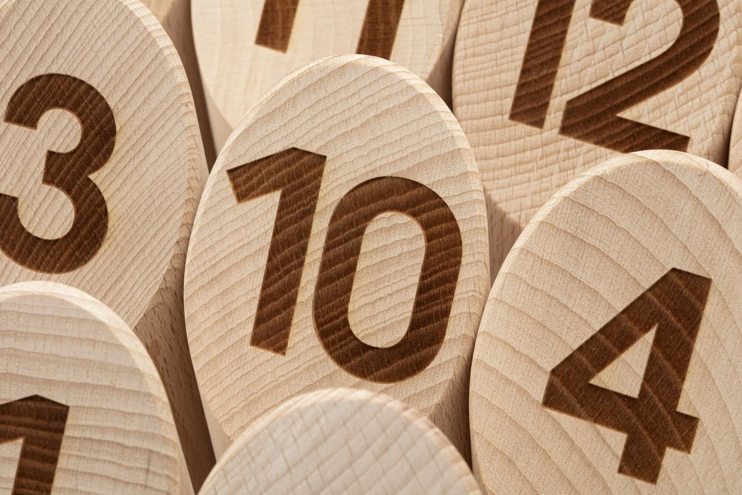 - Dauerhaft: eingravierte Zahlen auf den Kegeln